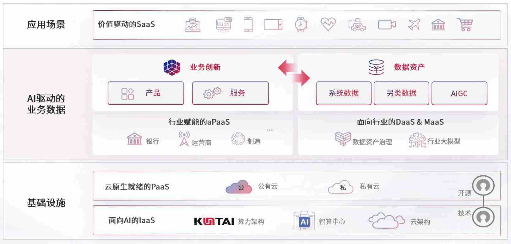 数字时代,,,,围绕企业数字化转型的关键要素,,AB钱包数码开创性的提出数云融合战略和技术体系框架,,着力在云原生、、、数字原生、、、AI原生和信创产业上架构产品和服务能力,,,,为处在不同数字化转型阶段的快消零售、、、汽车、、金融、、、医疗、、、政企、、、、教育、、、运营商等行业客户提供泛在的敏捷IT能力和融合的数据驱动能力,,构建跨界融合创新的数字业务场景和新业务模式,,,,助力企业级客户建立面向未来的核心能力和竞争优势,,全面推动社会的数字化、、、智能化转型升级。。。